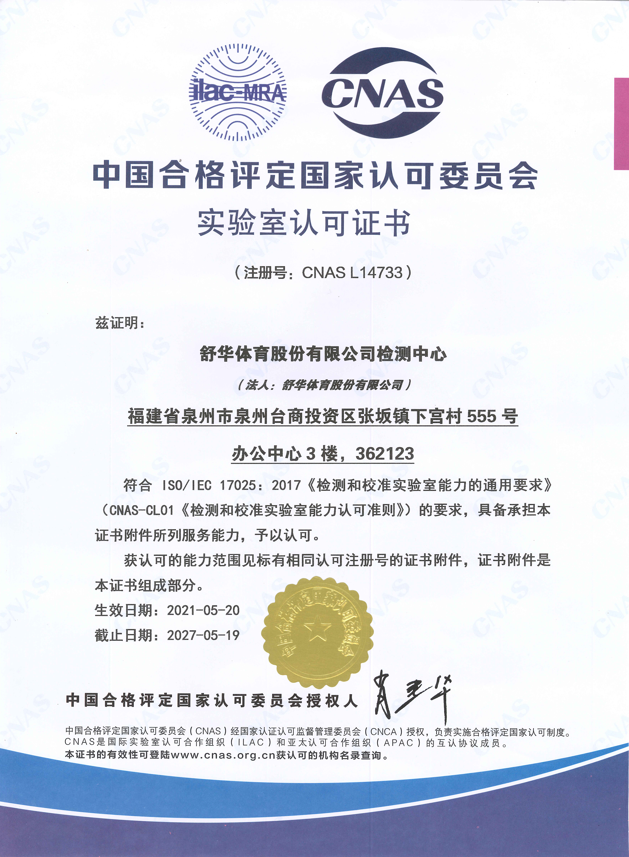 In May, SHUHUA was honored as ”China’s Top 20 Sports Goods Enterprise”